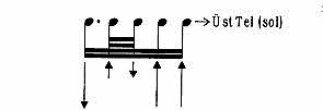 "Bağlamada Yöresel Tavırlar" Halk Müziği'nin en önemli özelliklerinden birisi de yörelere has söyleniş ve çalınış biçimleridir. Bağlama ile yörelerin tezene özelliklerini çalmaya, o yörenin tavrı denilmektedir. Bu tavırlar tezene kullanımı ile ilgilidir. Yani tezenenin alttan vurulması, üst tele taktırma, senkoplu çalış gibi özellikleri olan bu tezene çeşitlerine, kısaca tavır diyeceğiz. Tavırlar birkaç küçük ayrıntı ile birbirlerinden ayrılmaktadırlar. Bu ayrıntıların en önemli göstergesi ise görsel olmalarıdır. Yani tezenenin yukarıda veya aşağıda bitmesi gibi. Fakat genelde bağlamada kullanılan tavırlar, yörelere göre özellikler taşımalarına rağmen, bazen bir tavır içinde diğer tavırın mızrabını da görmek mümkündür. Örneğin: Kayseri tavrı sürmeli tezenesi ile birkaç senkoplu tezeneden ibarettir. Aynı örneği, Konya tavrı için de verebiliriz. Zeybek tavrının sonuna, bağlamanın üst telinin taktırılması ile Konya tavrı oluşturulur. Görüldüğü gibi tezene vuruluşlarının ayrılması veya birleştirilmesi tavırların zenginleşmesi açısından önemlidir. Bunun yanında bir tavrın yalnızca bir tezene ile çalınamadığı zamanlarda ise; o tavrın ikinci veya üçüncü varyasyonları ortaya çıkar. Örneğin Zeybek tavrını tek bir tezene ile anlatmak güçtür. O yüzden bir tezene çeşidi esas alınıp, ondan üretilenlerle beraber zeybek tavrı oluşmaktadır. Tavırların doğru icrasını yapabilmek için gerekli olan bir başka önemli nokta da, bağlamanın düzenidir. Düzenin farklı olması tavrın gerektiği şekilde kullanılmasına imkan sağlamayabilir. Bu yüzden herhangi bir yörenin türküsü icra edileceği zaman öncelikle akordu ve daha sonra türkünün tavrı ile çalınmasına dikkat edilmelidir . Bugün türkülerin icrasında kullanılan başlıca tavırlar şunlardır: 1. Zeybek tavrı 2. Sürmeli tavrı (Yozgat tavrı) 3. Kayseri tavrı 4. Konya tavrı 5. Silifke tavrı 6. Azeri tavrı 7. Ankara tavrı 8. Aşıklama tavrı 9. Karadeniz tavrı 10. Rumeli tavrı 11. Karşılama 12. Teke tavrı Bu tavırların uygulanışı esnasında tezenenin kullanılışının dışında parmaklara da görevler düşmektedir. Örneğin sürmeli tavrı mızrabı atılırken kıstırma denilen bir hareket yapılır. Bu hareket herhangi bir sesten onun yarım veya tam ses altına veya üstüne çarpma yapmak için kullanılır. Bunun icrası sırasında o seslere parmak vurarak yapılması en doğrusu olmasına karşılık, bunu yapamayanlar kıstırma hareketini kullanarak o sesleri çıkarmaya çalışırlar. Tabii sesler net ve temiz olmaz. Örneğin sürmeli tavrında da sesinden re sesine bir çarpma yapılacağı zaman: olması gerekirken, kıstırma hareketi ile, birinci parmağın do sesine,üçüncü parmağın da aynı tel gurubundaki re sesine aynı anda basması, re do seslerinin bir arada çıkmasını sağlamaktadır.  Do ve re seslerini ardarda çok çabuk duyurmayı amaçlayan bu sistemdeki özellik, parmakla ilgilidir. Parmaklarım gerektiği kadar hızlı çalıştıramayanlar ise, yukarıda görülen kıstırma hareketi sonucu o ses kümesine yakın bir ses elde ederler. Tabii ki amaç duyurulması gereken seslerin net ve temiz olmasıdır . Buradan tavırların icrasında tezenenin gerekliliği yanında parmakların da büyük rolü olduğunu görmek mümkündür. Tavırların kağıt üstündeki yazımı tezenenin gösterimi ile yapılmaktadır. Biz de burada tavırları bu şekilde göstereceğiz. 1. Zeybek Tavrı Zeybek tavrı biri temel olmak üzere, 4 ayrı tezene kümesi ile gösterilir.  2. Konya Tavrı Konya tavrının en önemli özelliği, bağlamanın en üst tel gurubuna (sol sesine) taktırma yöntemidir. Bir zeybek tezenesinden sonra yukarı doğru sol teline taktırmadan ibarettir.  Bu tavrın icrası sırasında hemen her nota kümesinin veya tavrın uygulanacak olması, gerekmeyen yerlerde de sol sesinin çıkmasına neden olmaktadır. Bunun önlenebilmesi için, yukarı tele taktırım esnasında o tel üstünde ve notada yazan seslerin 5. parmakla alımı mümkün olanlarının alınıp, türkü seslerini daha net çıkması sağlanabilir. Bu iş için 5. parmağa önemli görevler düşmektedir. 3. Silifke Tavrı Duyum olarak zeybek tavrının aynıdır. Fakat görsel olarak zeybek tavrının yön itibarı ile tam tersidir. Silifke yöresi türkülerinin metronomunun hızlılığı nedeni ile genellikle alt tel kullanılarak icra edilir.  Burada hemen bütün tavırların tezene vuruşlarında ilk başlangıç vuruşlarının üstten aşağıya doğru olması gerektiğini ifade edelim. 4. Azeri Tavrı Azeri tavrı tezenesinde genellikle alt tel kullanılarak icra edilir. Karşılama ve Silifke tavırlarına benzemesine karşılık, vuruşların süratleri açısından farklılık gösterir. Karşılama mızrabında ilk vuruş üst ve orta tellerin taranmasından sonra, tezene alt telde hareketini tamamlar. Azeri tezenesinde ise bu çalış yalnızca alt telde gerçekleştirilir.  5. Sürmeli Tavrı (Yozgat Tavrı) Sürmeli tavrının en önemli özelliği, okuyucuların hançereleri ile çıkardıkları seslerin bağlamaya yansımasıdır. Bu da bağlamada ancak tirillerle mümkündür. Yukarıda da belirttiğimiz gibi bağlamada tirilleri çarpma ile yapamayan bazı saz sanatçıları, bu işi kıstırma hareketi ile yapmaktadırlar. Tiril yapmak, bir notanın önündeki veya arkasında ki seslere çok hızlı şekilde çarpma yapmak demektir. Tabii çarpma alınacak ses o ezginin tonal yapısı ile doğru orantılıdır. Türkülerin notaları yazılırken bazı sürmeli tavrının işlenmesi gereken yerlerde (tr) işareti ile bu tavrın uygulanması gerektiği anlatılmak istenilmiştir.  6. Kayseri Tavrı Kayseri tavrı, sürmeli tezenesi ile birlikte bazı seslerden önce genellikle 32'lik seslerle beraber, sağ elin bağlama 