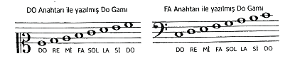 Anahtarların en önemli görevleri notaların isimlendirilmelerini sağlamalarıdır. Her anahtar yazıldığı çizgideki notaya kendi ismini verir. Örnek olarak. 1. çizgideki DO ve 4. çizgideki FA anahtarlarını ele alalım. Öteki anahtarlar için de durum aynıdır.