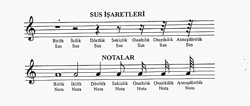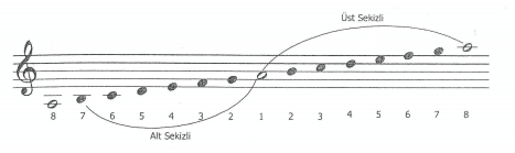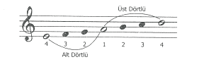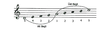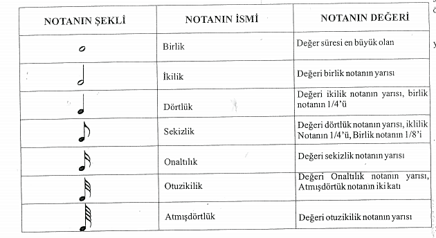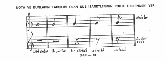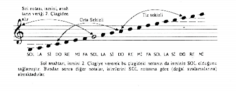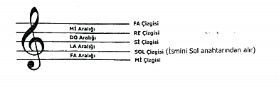 Türk müziğinde kullanılan Sol anahtarına göre portedeki çizgi ve aralıkları isimleri aşağıdaki gibidir.