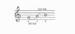 2. Uşşak dörtlüsünün karar perdesinin bir Tanini altında Rast (SOL) çeşnisinin yer aldığını biliyoruz. Uşşak seyri sırasında Rast (SOL) perdesine düşülürse, Rast da rastlı asma karar yapılmış olur.