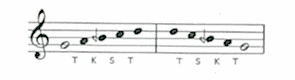 1. darb kuvvetli, 2. zayıf, 3. kuvvetli, 4. zayıf, 5. kuvvetli, 6. yarı kuvvetli, 7. zayıf, 8. kuvvetli, 9. yarı kuvvetli ve 10. Zayıftır.