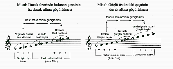 Ayrıca Rast (Sol) perdesinde de Rast beşlisi ile asma karar yapılabilir.