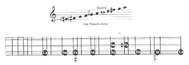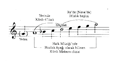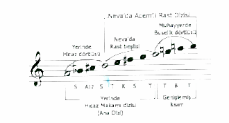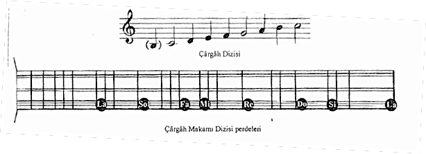 Dizisi: Çargah makamı dizisinin SOL (Rast) perdesinde inici şeklidir.