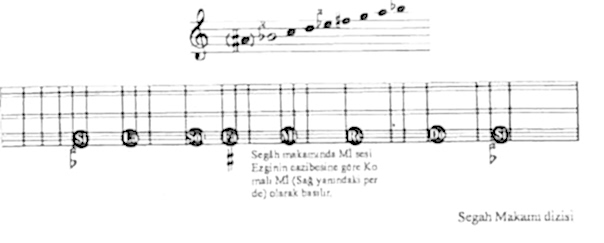 Durağı: Sİ bemol (1 koma) "Segah" perdesidir